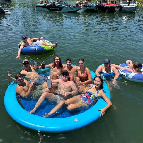 Fabriqué en bâche PVC écologique de haute qualité, notre anneau flottant est conçu pour résister à d’innombrables heures de détente sur l’eau. Ses coutures faites à la main et son fond en maille ultra-résistante offrent une excellente résistance à l’eau et une durabilité exceptionnelle — garantissant qu’il reste en parfait état saison après saison. Cet anneau flottant peut supporter jusqu'à 390 kg., pour que vous puissiez flotter l’esprit tranquille, en solo ou en famille !