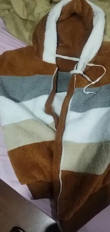Joli design color block, très tendance et pratique avec ses poches. Idéal pour les journées froides. JE LE RECOMMANDE
